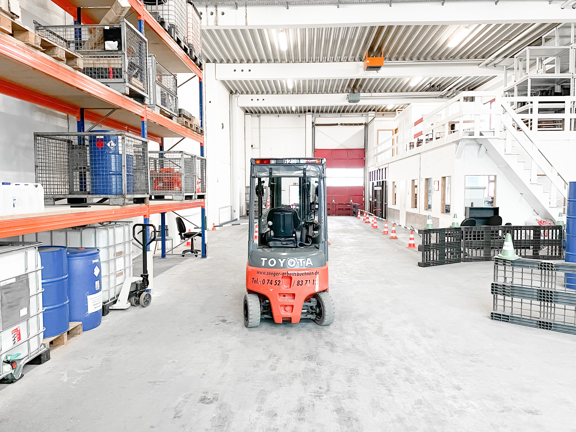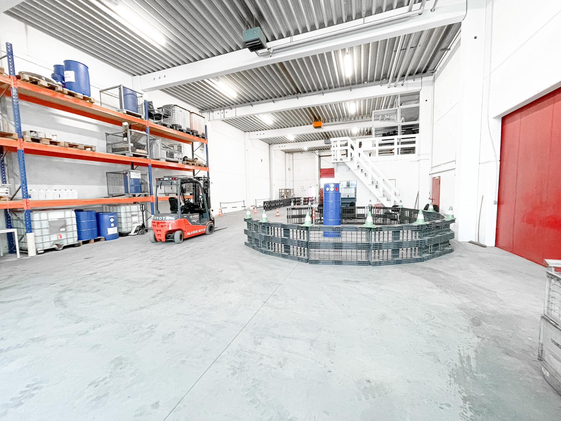 Aktuell werden die Lagerhallen von drei verschiedenen Mietern genutzt und sind jeweils über drei Sektionaltore separat und ebenerdig andienbar. Die Sektionaltore habe eine Breite von ca. 3,30 Metern und eine Höhe von ca. 4,40 Metern. Die Lagerhallen haben an den Decken auch eine Vorrichtung für einen Kran und der Boden verfügt über eine hohe Bodentraglast, da das Objekt nicht unterkellert ist. Alle Lagerhallen sind miteinander verbunden und können als Gesamtheit genutzt werden. Mit einer Deckenhöhe UKB von ca. 6,16 Metern, sind diese insbesondere auch für Hochregallager geeignet.