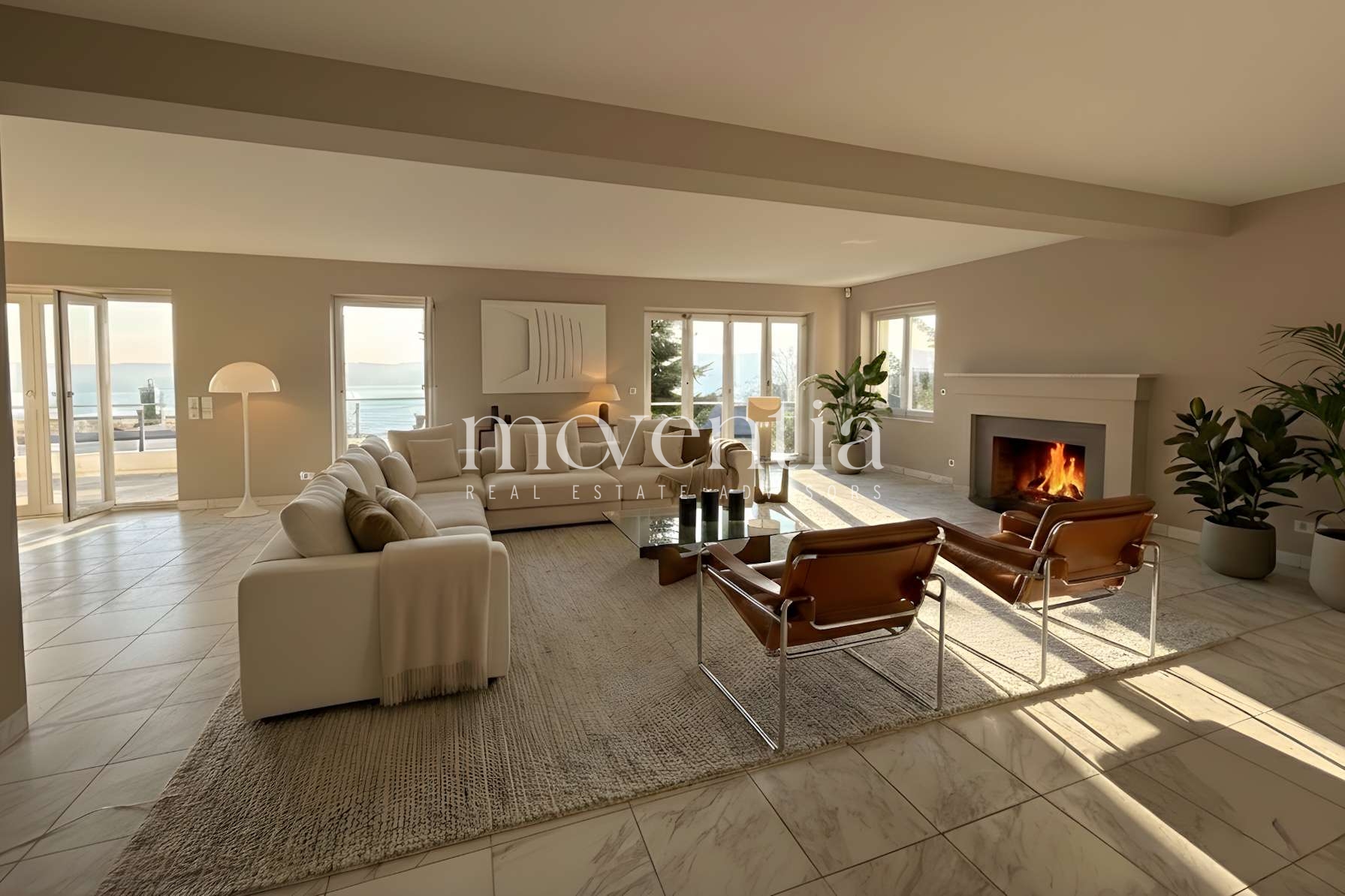 Im Innenbereich überzeugt die Villa durch hochwertige Materialien und ein durchdachtes Raumkonzept. Edle Parkettböden im Obergeschoss, Carrara-Marmorböden im Wohn- und Essbereich, Fußbodenheizung im Erd- und Obergeschoss sowie doppelt verglaste Holzfenster schaffen ein angenehmes Wohnklima. Ein besonderes architektonisches Highlight stellen die originalgetreuen Design-Elemente dar. Tür- und Fenstergriffe sowie Armaturen im Stil der 1930er-Jahre von Eileen Gray greifen die gestalterische Handschrift der frühen Moderne auf und schaffen eine elegante Verbindung zwischen der Entstehungszeit des Hauses und zeitgemäßem Wohnkomfort.